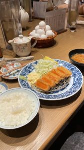 ここにはサーモンレアカツというのがあって、レアのサーモンに衣が付いてるやつがあって