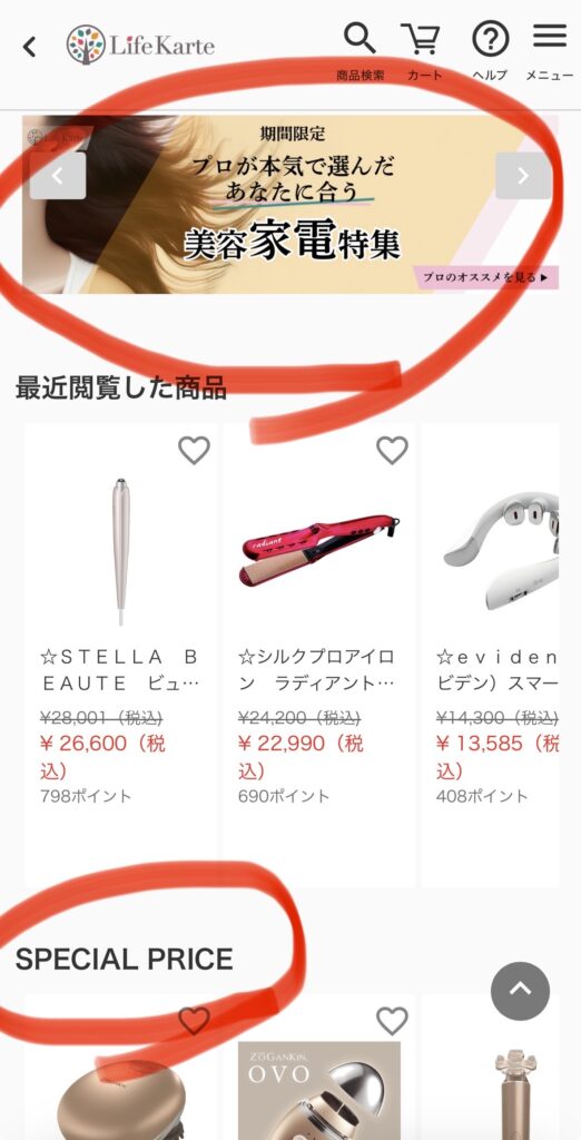 トップページの「美容家電特集」または「SPECIAL PRICE」をチェック!
