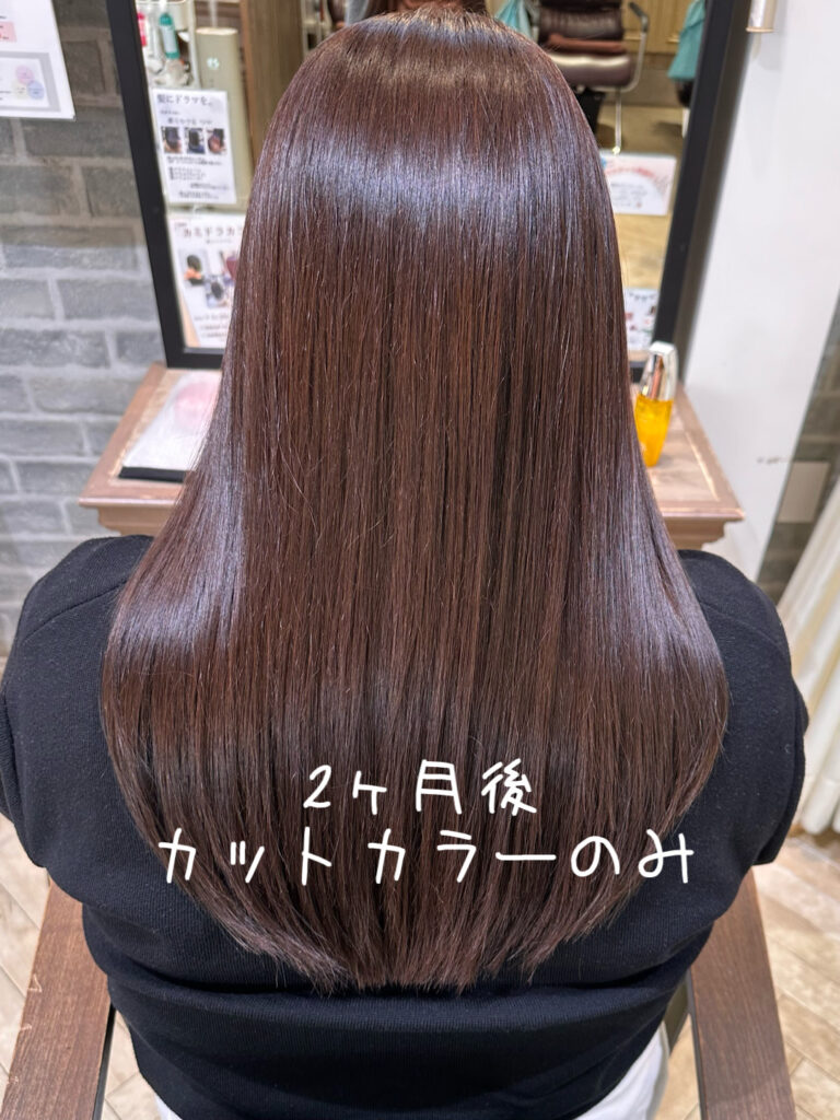 カットカラーのみの施術でも、こんなにツヤツヤをキープできています!