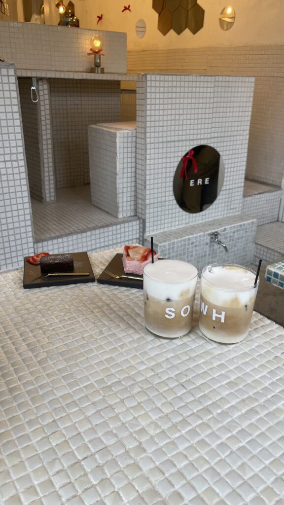 こんにちは!スタイリストのさわだです! 先日、同期と一緒に三軒茶屋にある「somewhere」に行ってきました! お風呂っぽいコンセプトのカフェで、メニューがタイルでできてて、裏を返すと画像が出てくる感じで新しくて面白かったです!